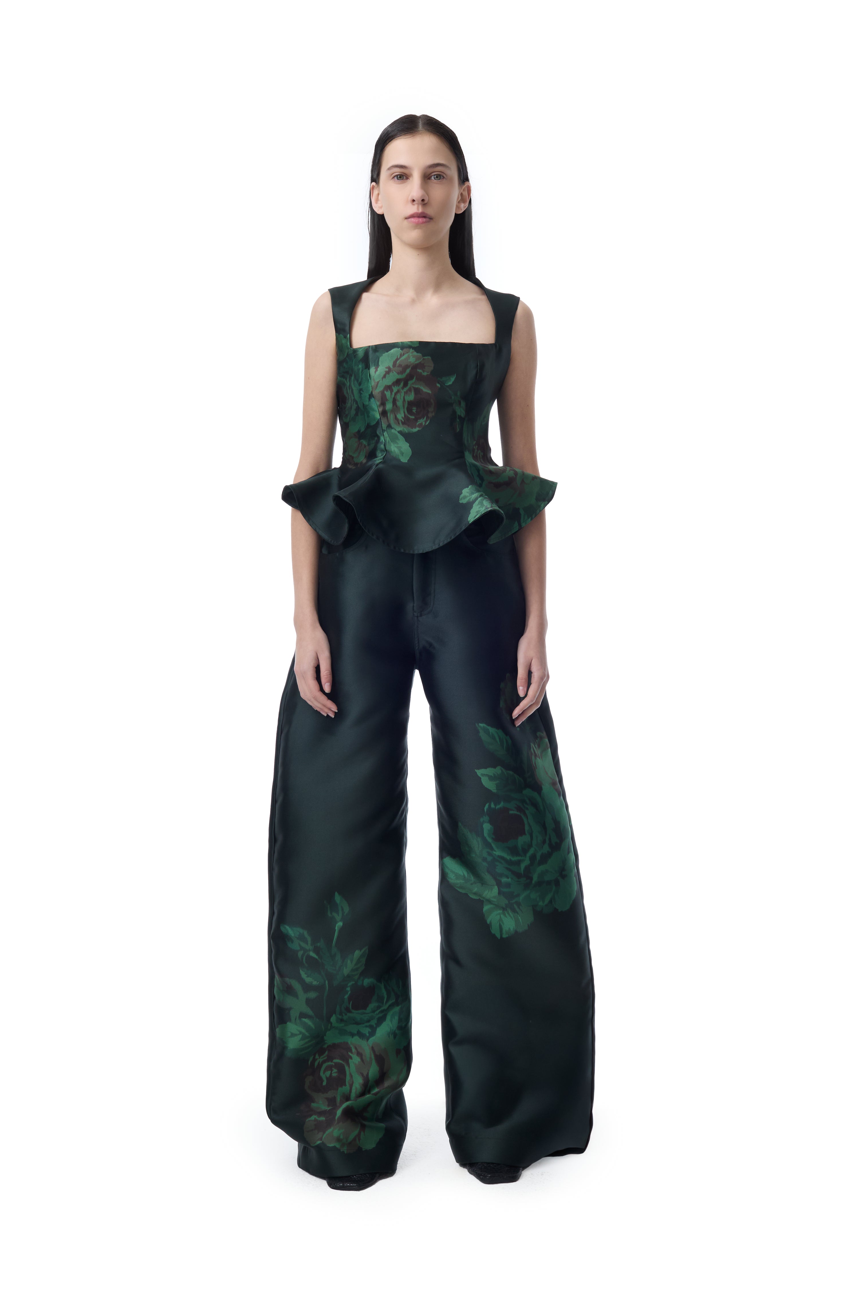 GREEN FLOWER MIKADO BOYFRIEND TROUSERS