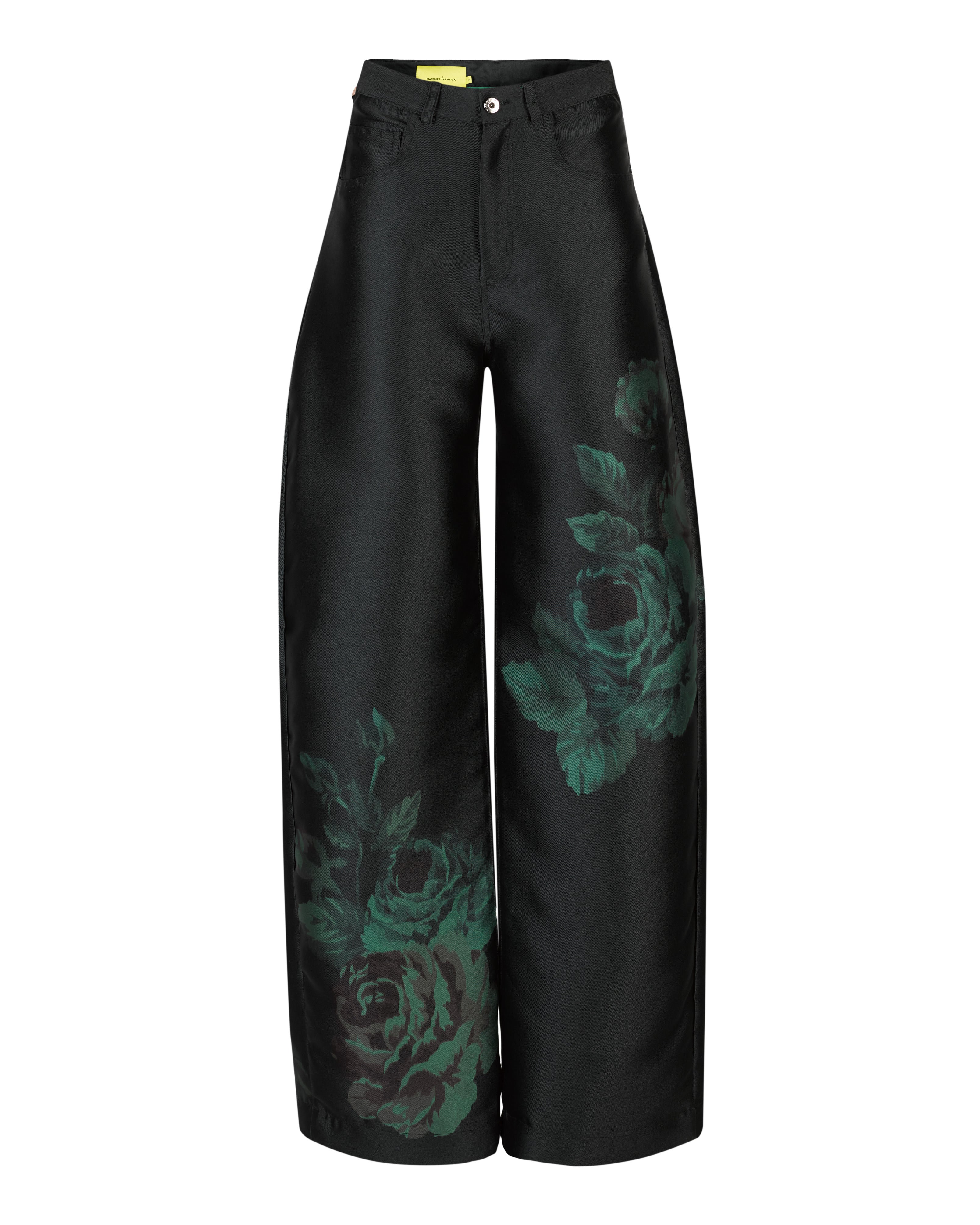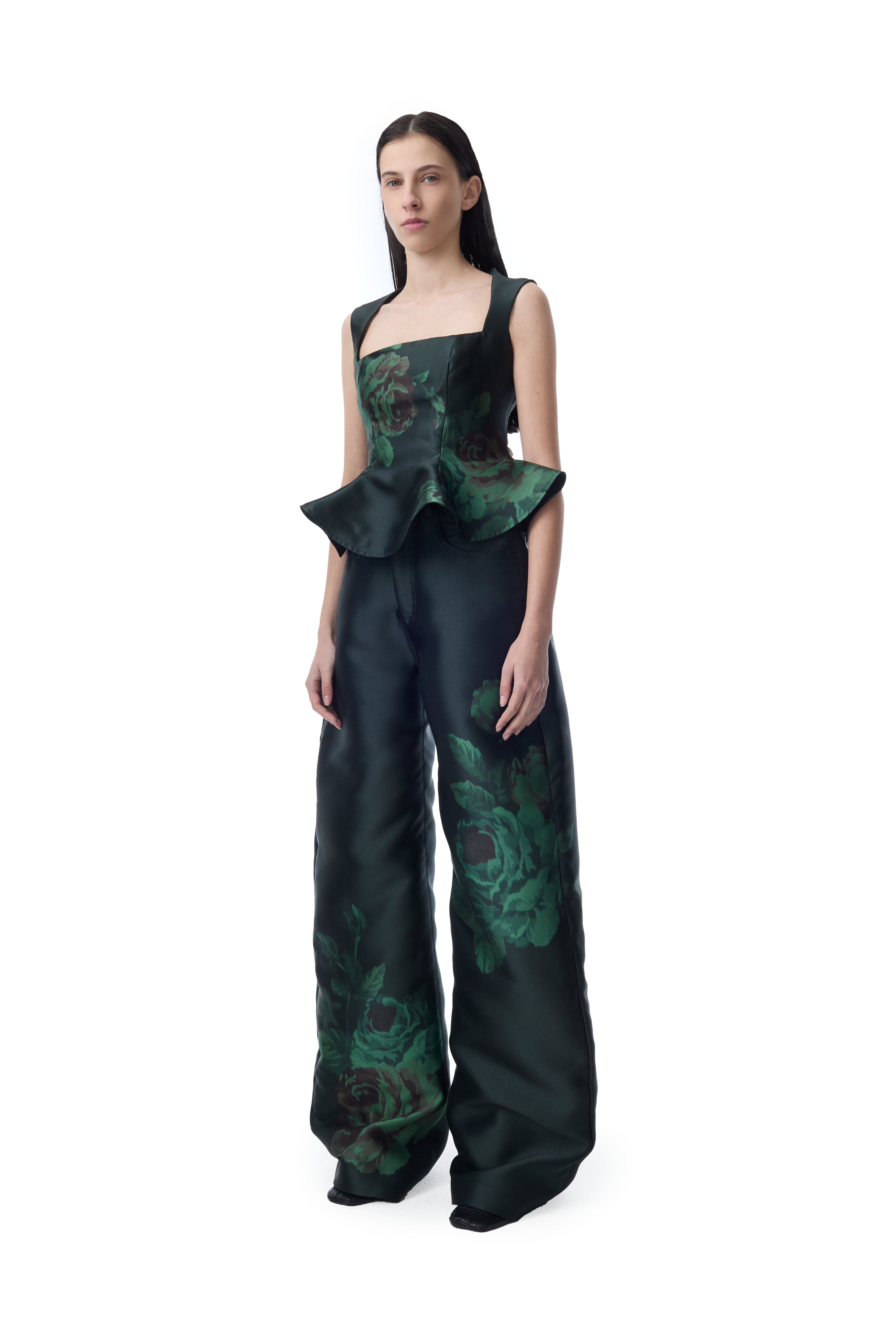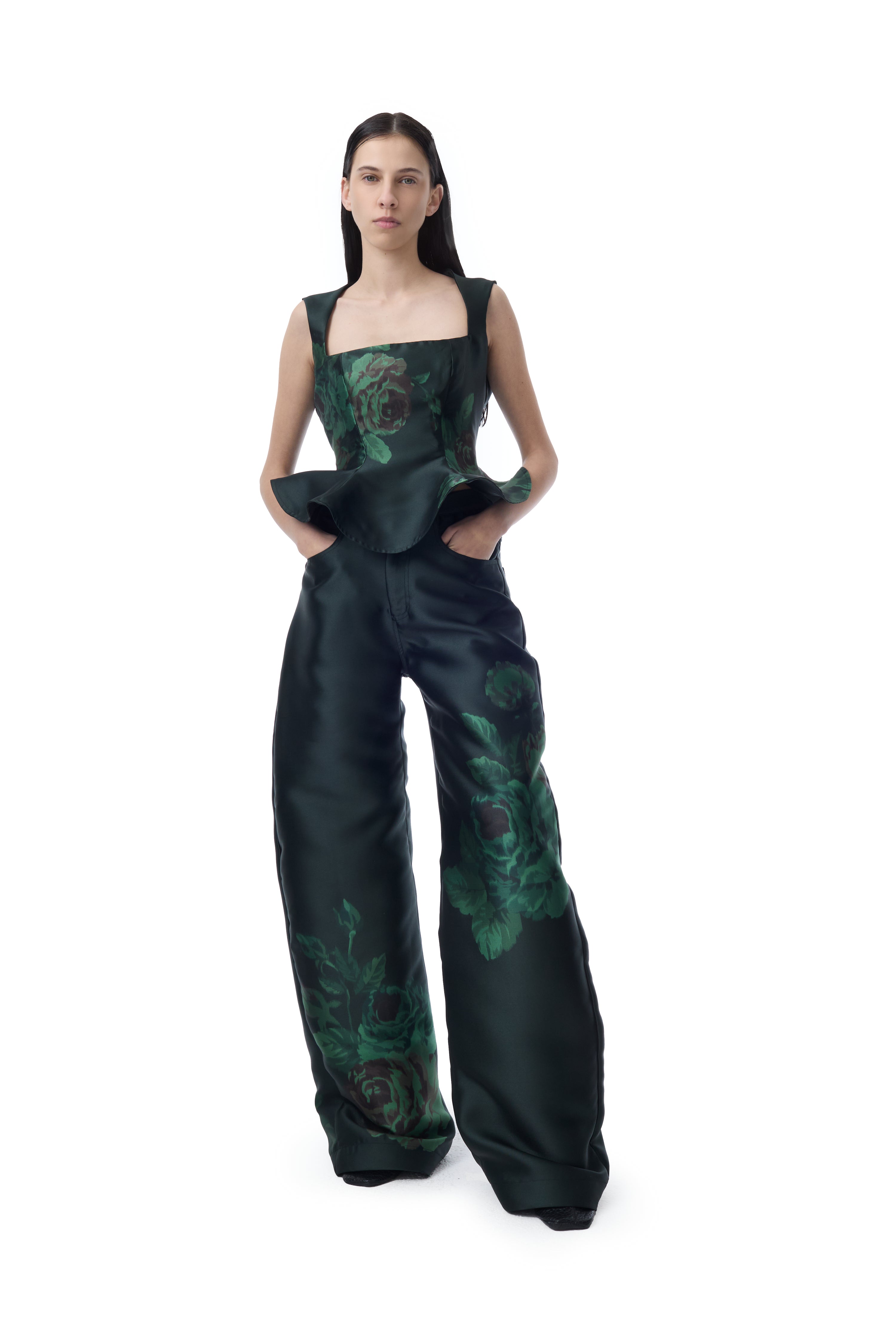 GREEN FLOWER MIKADO BOYFRIEND TROUSERS