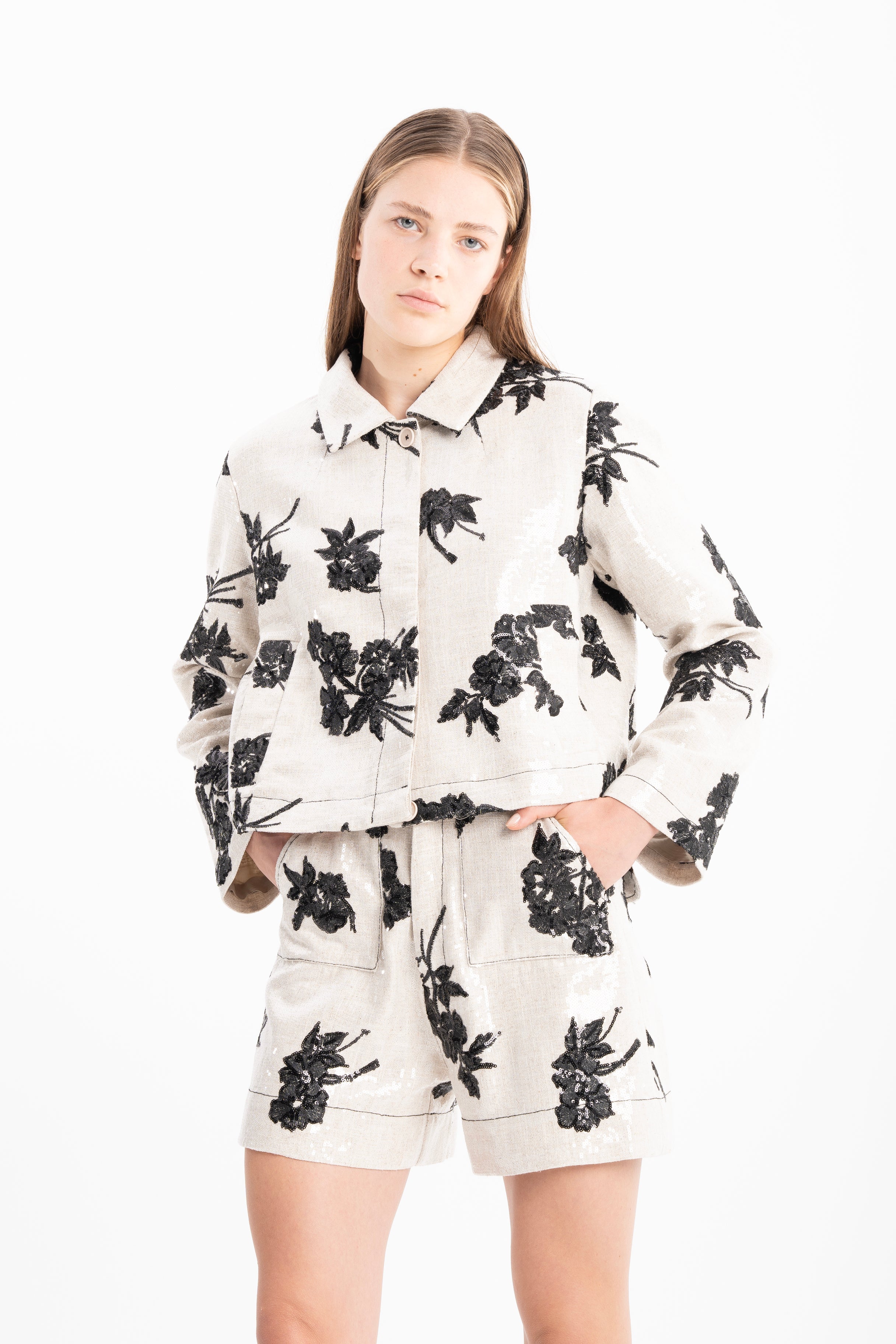 DENIM JACKET WITH FLOWER EMBROIDERY