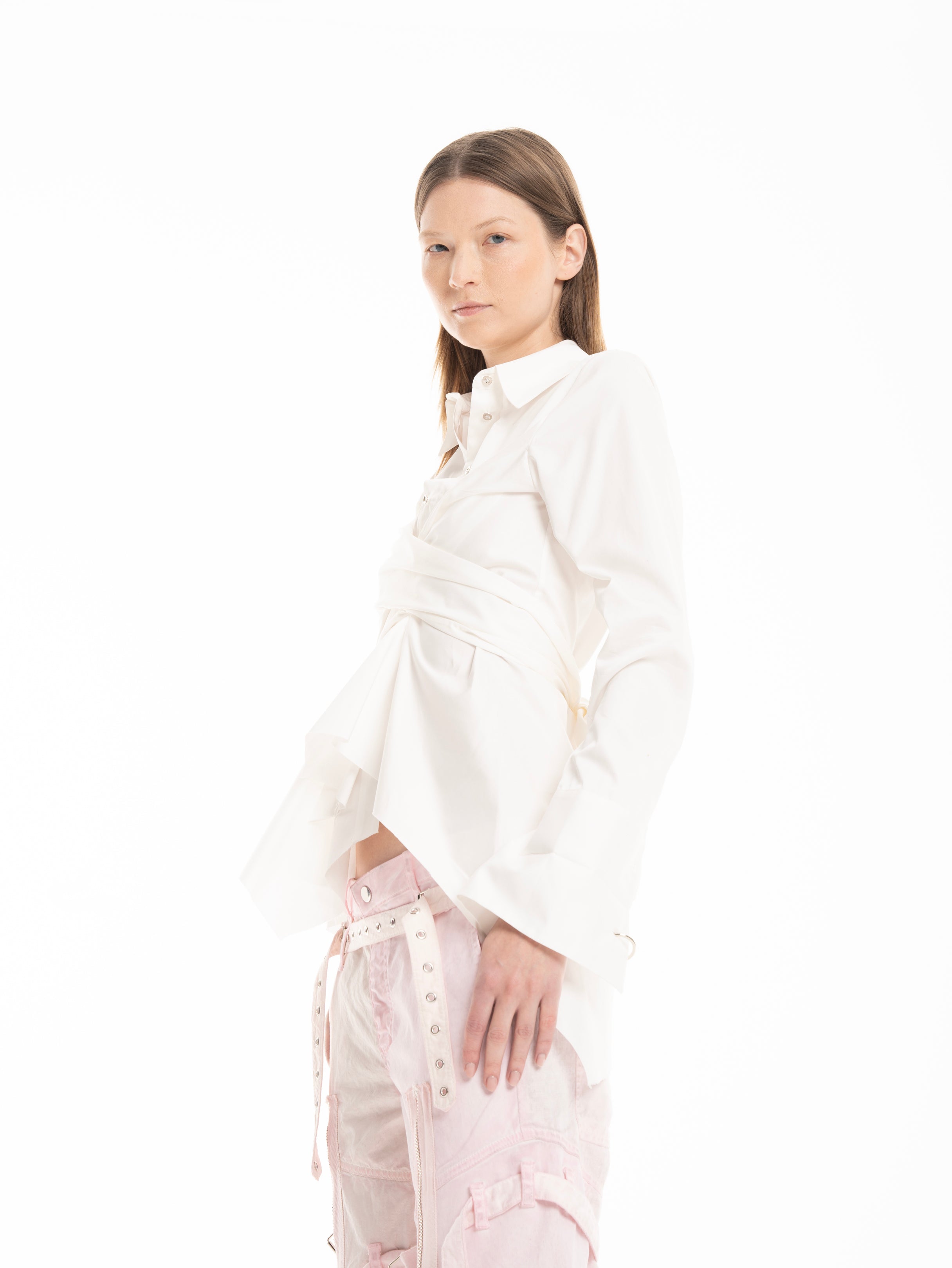 WHITE CROSS WRAP SHIRT